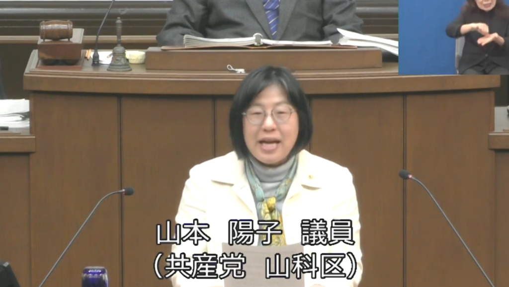 イランへの軍事攻撃の即時停止と中東地域における紛争の平和的解決を,意見書について討論,山本陽子議員(山科区)