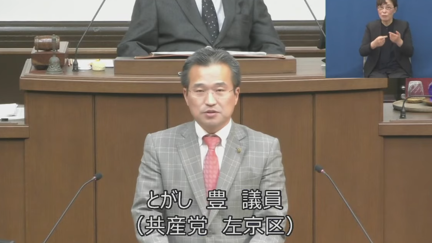 代表して、とがし豊議員(左京区)が条例議案の提案説明を行いました。その内容は、以下の通りです。